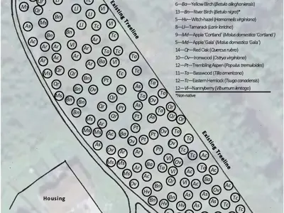The project will take place this summer and will include the planting of 150 trees, including, Serviceberry, Red Maple, Sugar Maple, Yellow Birch, River Birch, Witch-Hazel, Tamarack, Apple (Cortland and Gala), Red Oak, Ironwood, Trembling Aspen, Basswood, Eastern Hemlock, and Nannyberry.