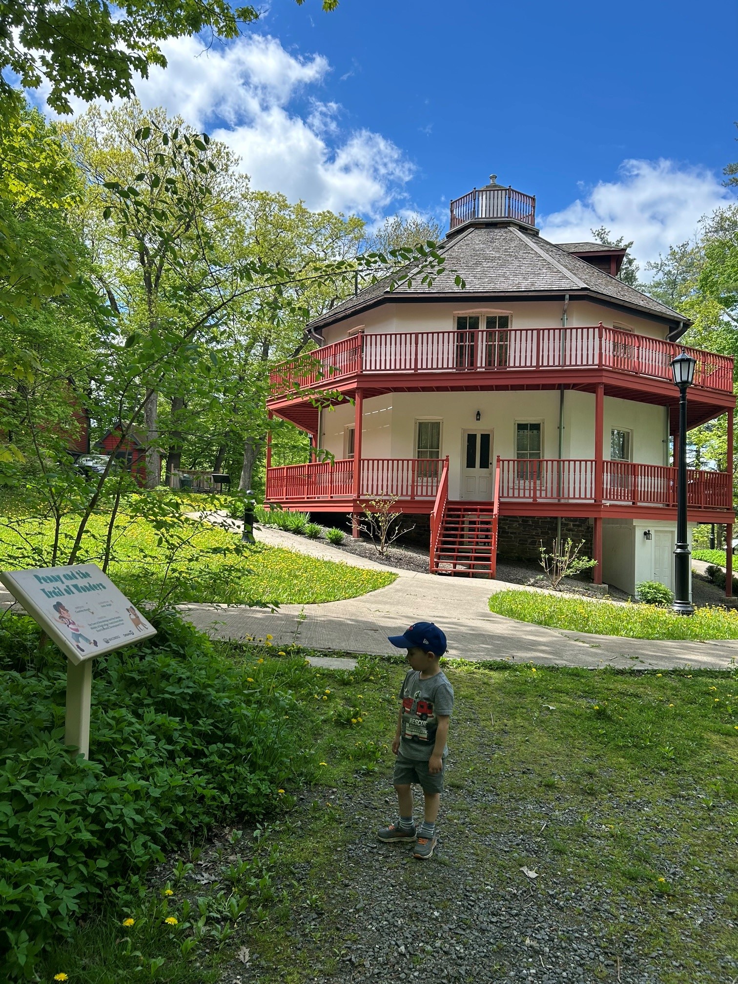 Located at 15 King Street, within the lush parkland you will discover eight storybook panels adjacent to Woodchester. This short trail is easy to navigate and finishes at the octagonal observation deck inspired by Woodchester itself. The deck provides a vantage point overlooking the Muskoka River and surrounded by nature.
