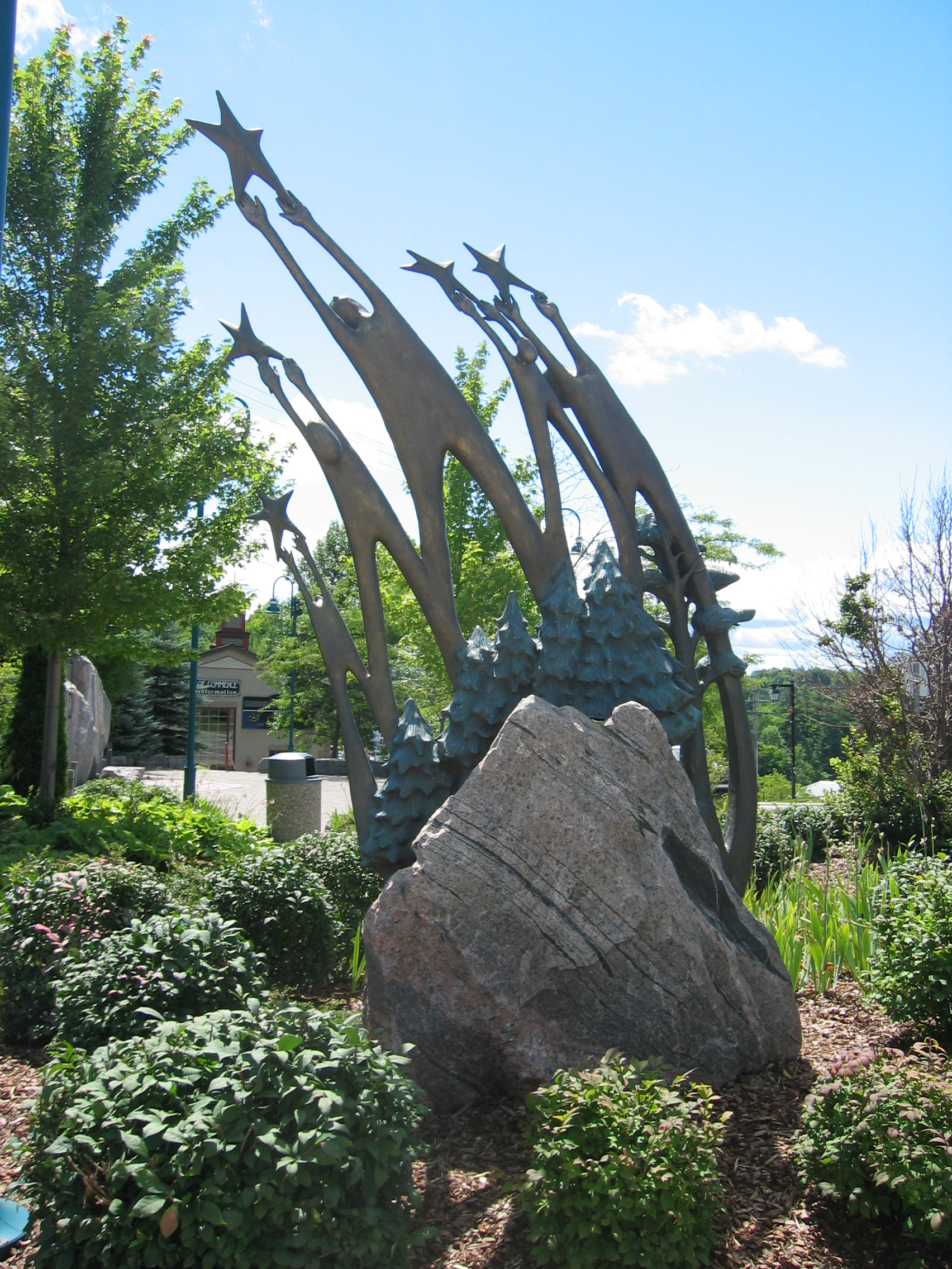 Installed in 2000, Aurora was created by acclaimed sculptor Brenda Wainman Goulet as a symbol of the new millennium. The sculpture embodies hope and optimism for the future while honoring 125 years of Bracebridge’s history and the vision of its founders. Located in the Bird Mews Parkette, Aurora remains a meaningful marker of community identity and renewal.