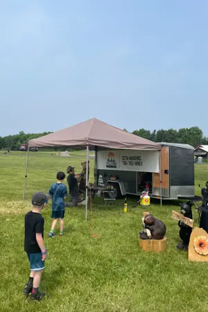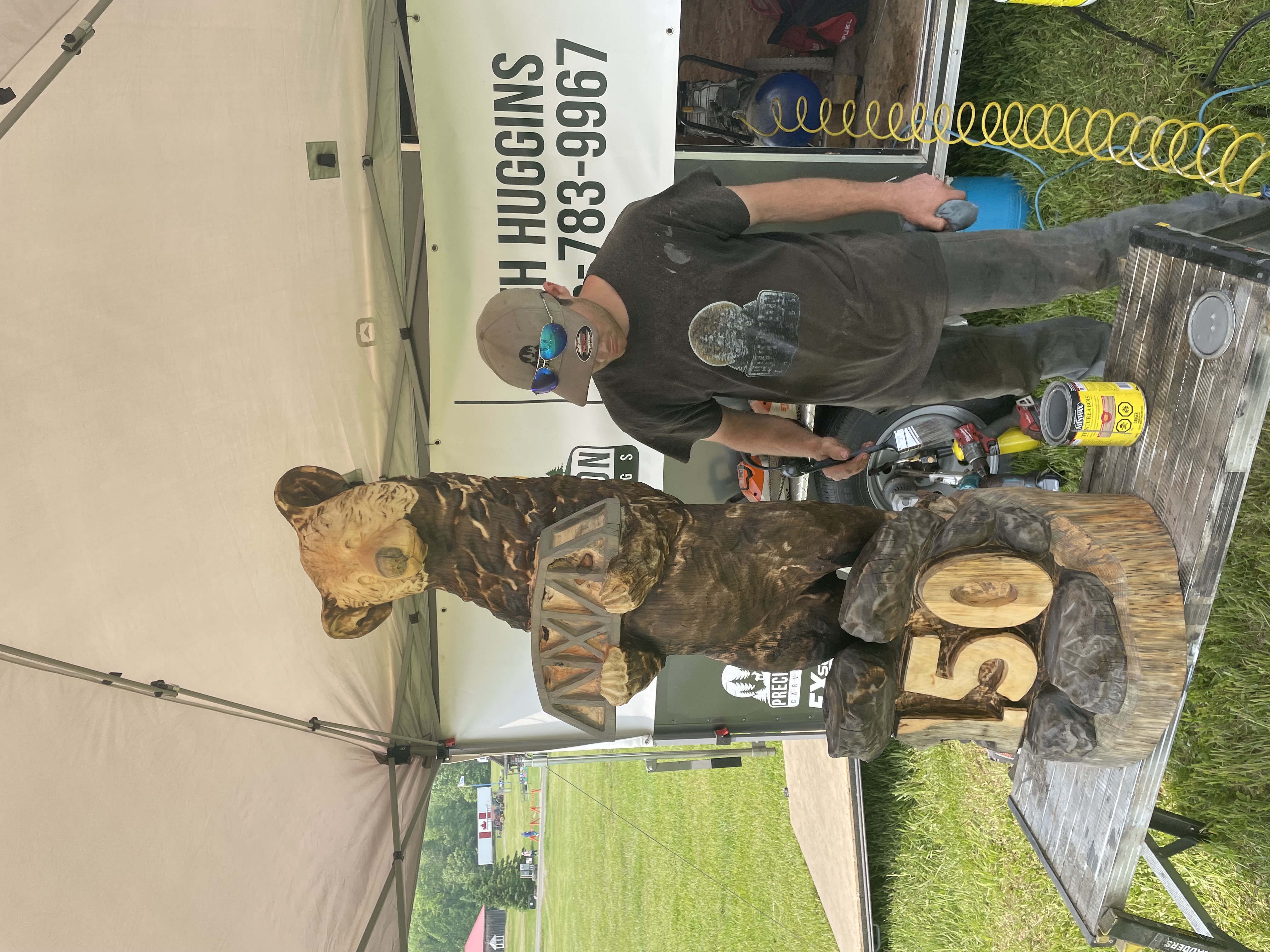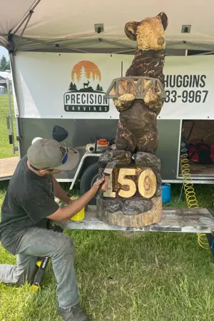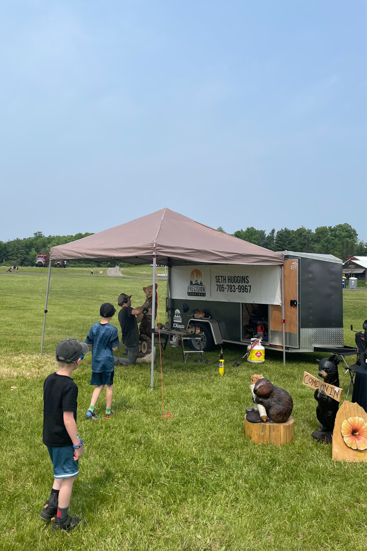 Born and raised in Muskoka, Seth Huggins is the talented chainsaw artist behind Precision Carvings in Port Sydney. What began as a hobby at just 14 years old has grown into a full-time passion. Seth is known for his detailed wood sculptures that beautifully capture the spirit of Muskoka’s landscapes and wildlife. His live carving demonstrations have become a crowd favourite at local fairs and festivals, where audiences are captivated by his creativity and skill. Seth was just 19 years old when he carved Chester the Bear.