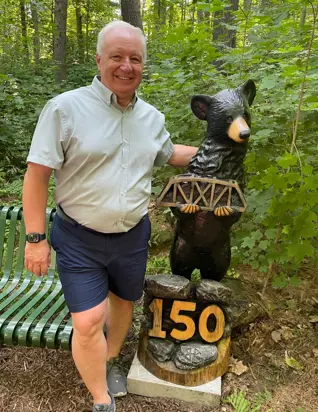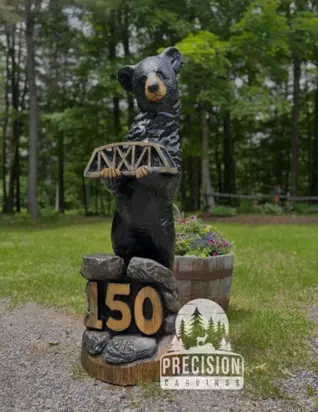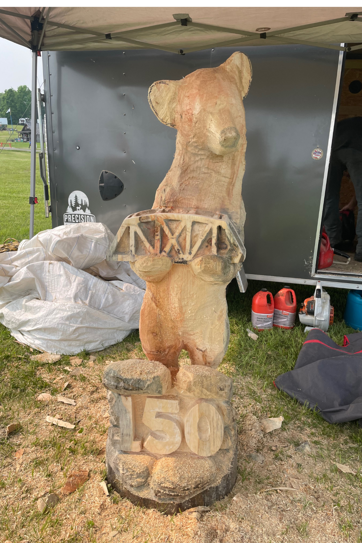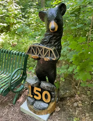 Originally carved during the Bracebridge 150 Community Celebration and Showcase at J.D. Lang Activity Park on June 7 and 8, 2025, the sculpture was generously donated by Seth Huggins of Precision Carvings. Chester depicts a bear holding the Silver Bridge, with “150” engraved at the base to commemorate the Town's milestone anniversary. Made from white pine and finished with Minwax stain and a Helmsman clear coat, the sculpture stands 56 inches tall and weighs approximately 175 pounds.