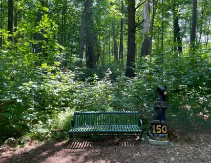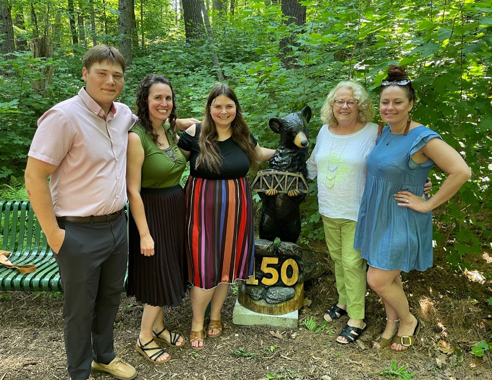 In July 2025, the Town unveiled a new public art sculpture along the Woodchester Storybook Trail — a carved wooden bear named Chester. Nestled along the trail, Chester’s location offers a perfect blend of art, nature, and storytelling. The trail winds through the parkland surrounding the historic Woodchester house, featuring eight storybook panels and a scenic lookout over the Muskoka River.