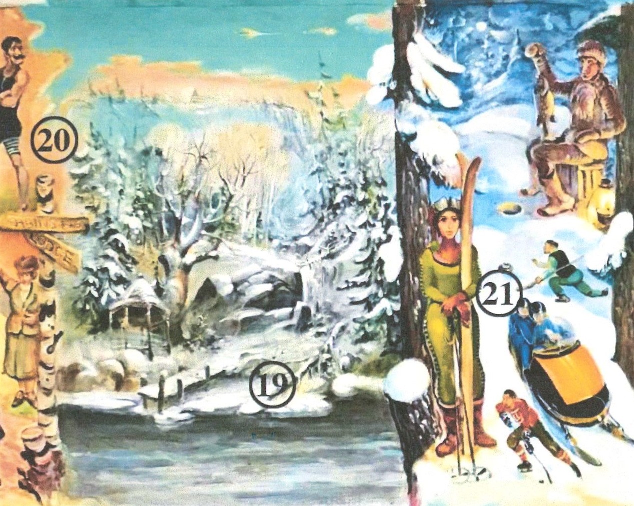 1. Before European settlement, trade among Indigenous peoples was commonplace. The first significant interest non-Indigenous settlers had in Muskoka came through the fur trade. This scene depicts a trapper on snowshoes, armed with a flintlock rifle, returning from his trapline with a collection of pelts.