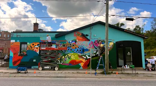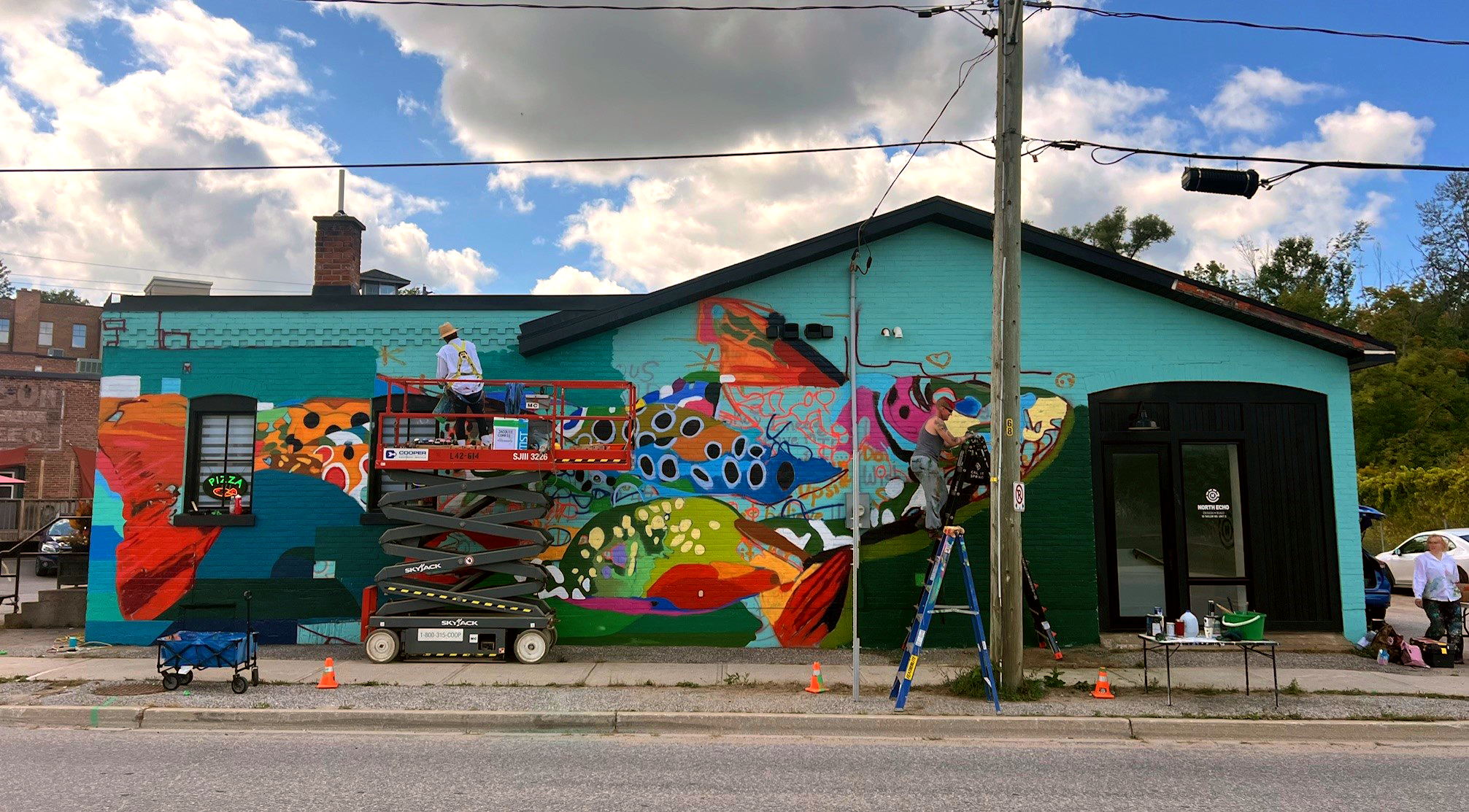 This project was completed in partnership with the Downtown Bracebridge Business Improvement Area (BIA). The mural location is hosted by North Echo, who collaborated with the Town and BIA on this project.
